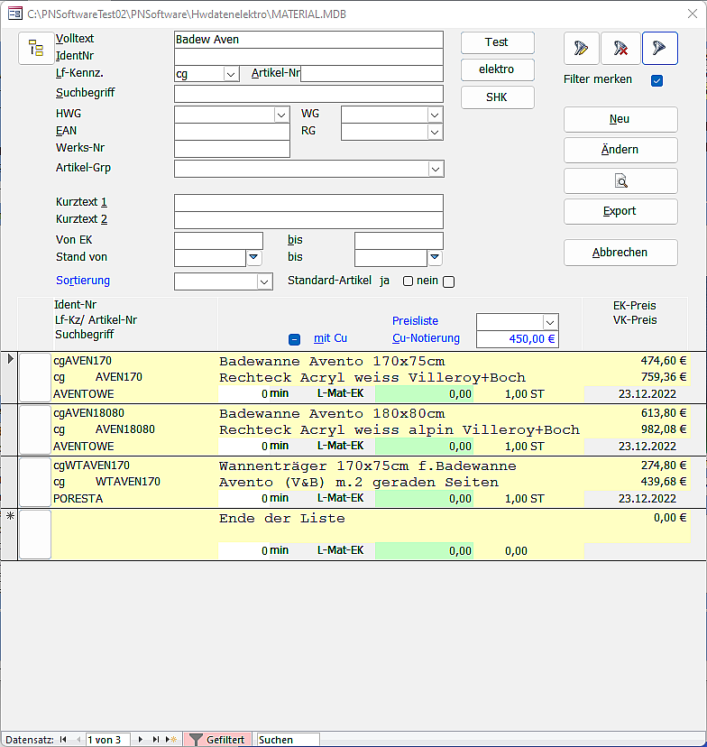 - Begrenzte Suche nur über Standardartikel oder definierte Preislisten.