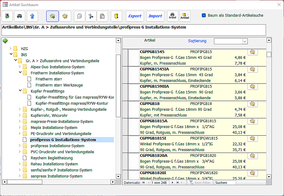 Artikelverwaltung in PN Handwerk