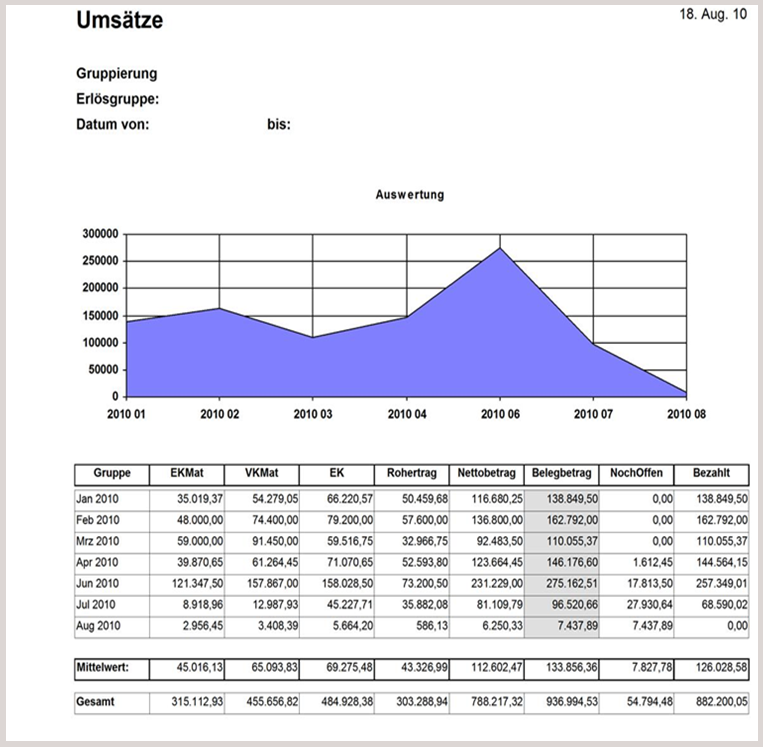 Auswertung nach Zeiträumen und anderes
