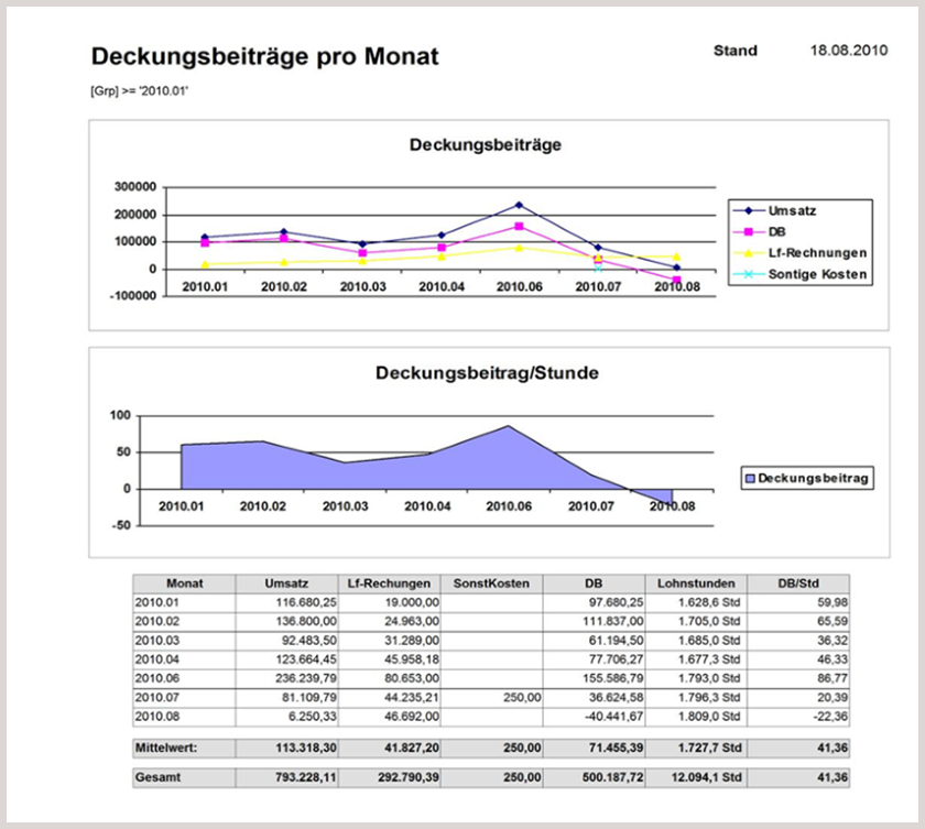 - Deckungsbeitrag pro Monat
