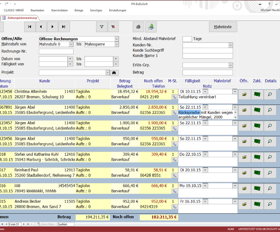 - Reduzieren Sie den Zeitaufwand für die Kontrolle Ihrer offenen Posten auf ein Minimum. PN Mahnwesen bietet Ihnen in ein leistungsfähiges Instrument für die Gestaltung Ihres Forderungsmanagement