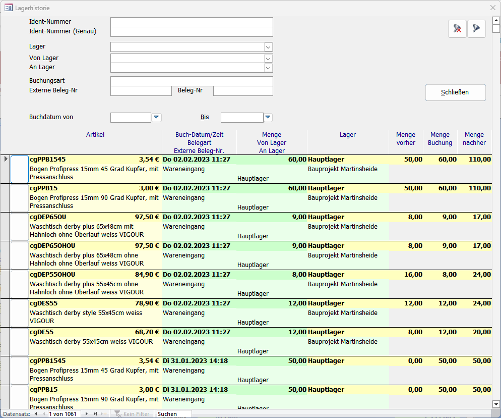 - Bestandsmenge zu jedem Artikel in der Artikelsuche
