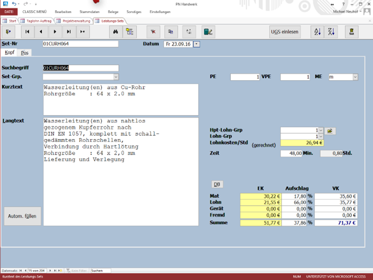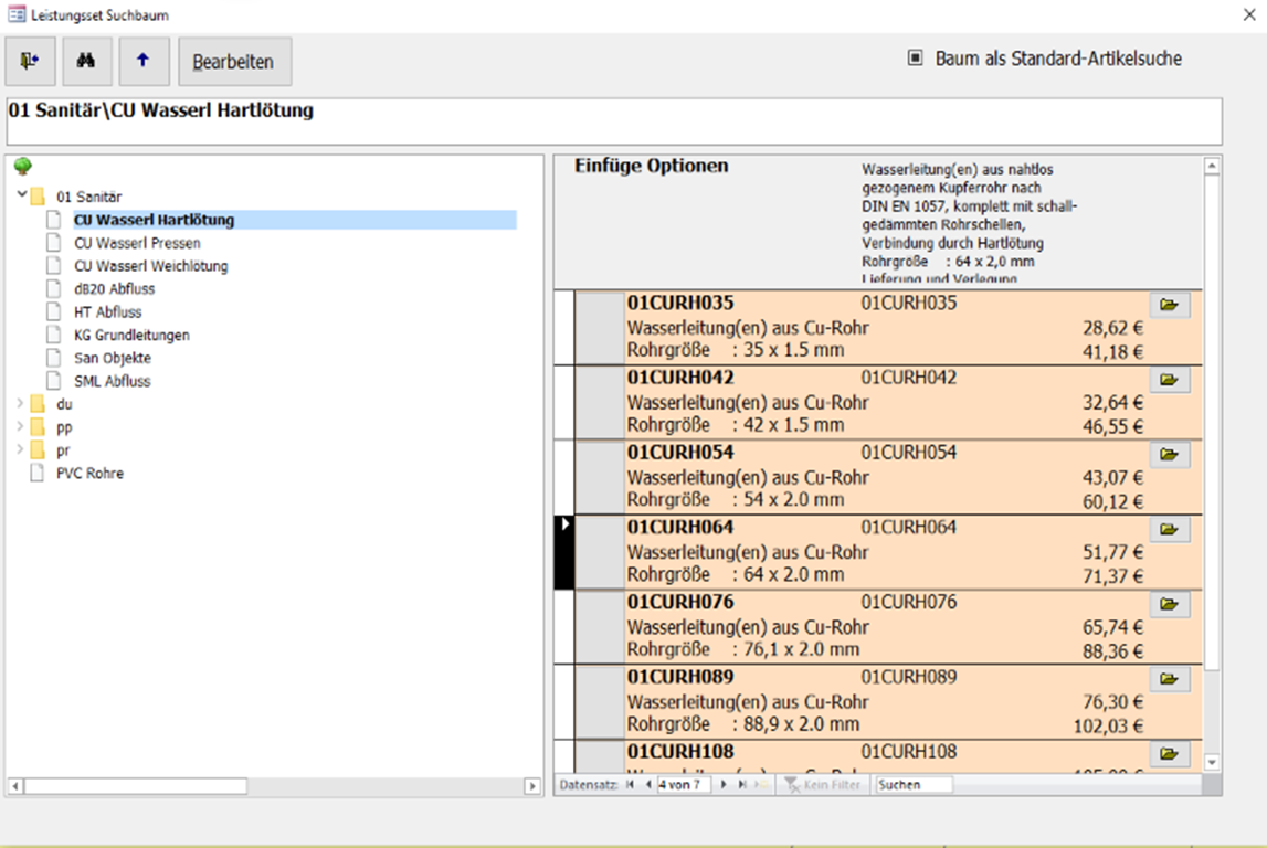 - Leistungssets stehen mit Kurz– Lang– und eigenem Langtext zur Verfügung.