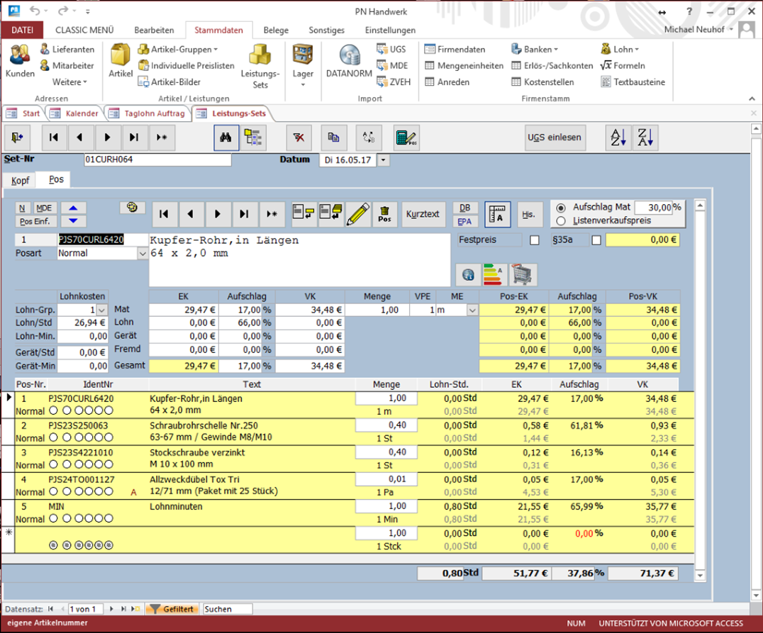 - Selektive Anpassung der Leistungs-Sets in den Kostenarten Lohn, Material, Fremdleistung, Maschinenkosten.
