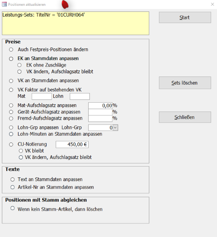 - Preispflege der Leistungssets automatisch oder nach Bedarf mit den aktuellen Artikeldaten.