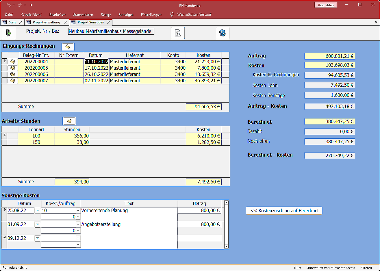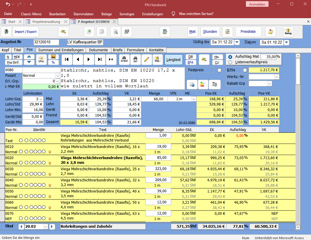 Mit PN Handwerk Projektverwaltung erhalten Sie ein Modul, dass Sie in der Bearbeitung, Kontrolle und Abwicklung Ihrer Projekte maßgeblich unterstützt. Nützliche Erfahrungen vieler Anwender sind in diesen Bereich eingeflossen. Das ist für Sie in der schnellen und unkomplizierten Handhabung spürbar. Dabei spielt es keine Rolle, ob es sich um „große oder kleine“, kurzfristige oder langfristige Projekte handelt.